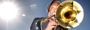 A passionate performer and educator, British trombone player Dennis Rollins MBE has established a reputation as an artist of excellence, and has lent his unique and stylish talents to some of this country’s, and indeed the world’s top jazz and pop personalities such as Courtney Pine, Maceo Parker, Jamiroquai, US3, The Brand New Heavies, Blur, Monty Alexander, Pee Wee Ellis and Jean Toussaint, amongst others. As a bandleader, in 2006 his jazz/funk outfit Badbone & Co won a prestigious BBC Jazz Award in the Best Band category. In the following year he picked up both Trombonist of the Year at the British Jazz Awards and Ronnie Scott’s Jazz Awards. Dennis was nominated twice in the 2008 Parliamentary Jazz Awards for Jazz Musician of the Year and for Jazz Education; he won the latter.Other awards include British Trombone Society (BTS) Player of the year Award 2013 and JazzYorkshire Award 2012 Best Band for his band Velocity Trio. In his hometown of Doncaster UK, Dennis was given Honorary Freedom of the Borough in recognition of his successful musical career and for his constant inspiration to the regions musical youth.As part of Her Majesty the Queen’s Birthday Honours 2018, Dennis was honoured with an MBE for Services to music. Most recently in June 2022, he was awarded an Honorary Fellowship from the Royal Welsh College of Music and Drama, Wales, UK.​A sought after jazz educationalist, Dennis has worked in collaboration with many of the UK’s university and colleges delivering a wide range of music programmes and performance workshops. Dennis says “Growing up, I was extremely fortunate to have had the most inspiring and dedicated teachers. The skills and compassion I acquired were a result of that education. Teaching feels very natural to me. I feel it’s a duty to pass on my musical knowledge to the next generation.” ​As a recording artist he’s currently recorded 5 critically acclaimed albums. Three with his award-winning band Badbone & Co, and two with his progressive jazz organ-trio, Velocity Trio.​He’s proud to be an exclusive endorsee of UK brass instrument maker, Michael Rath Trombones and Argentinian mouthpiece maker Boqar Baro Mouthpieces.